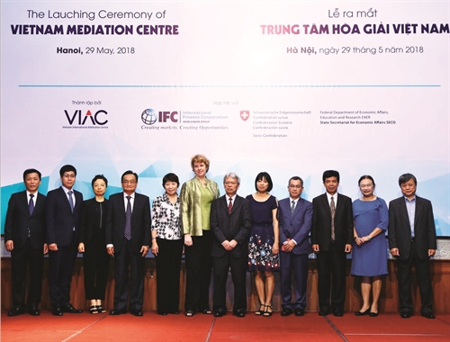 | Mediators of the Vietnam Mediation Center at its launching ceremony held in Hanoi on May 29 __Photo: Minh Quyet/VNA |