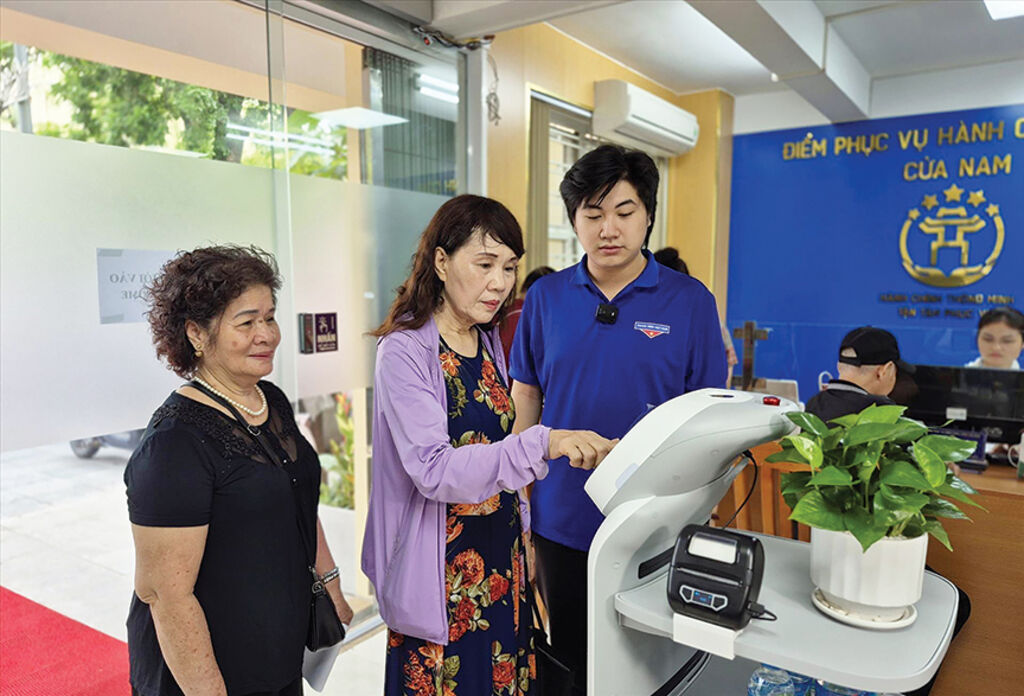| Citizens use AI-powered robot at the Cua Nam ward public service centre, Hanoi__Photo: VNA |