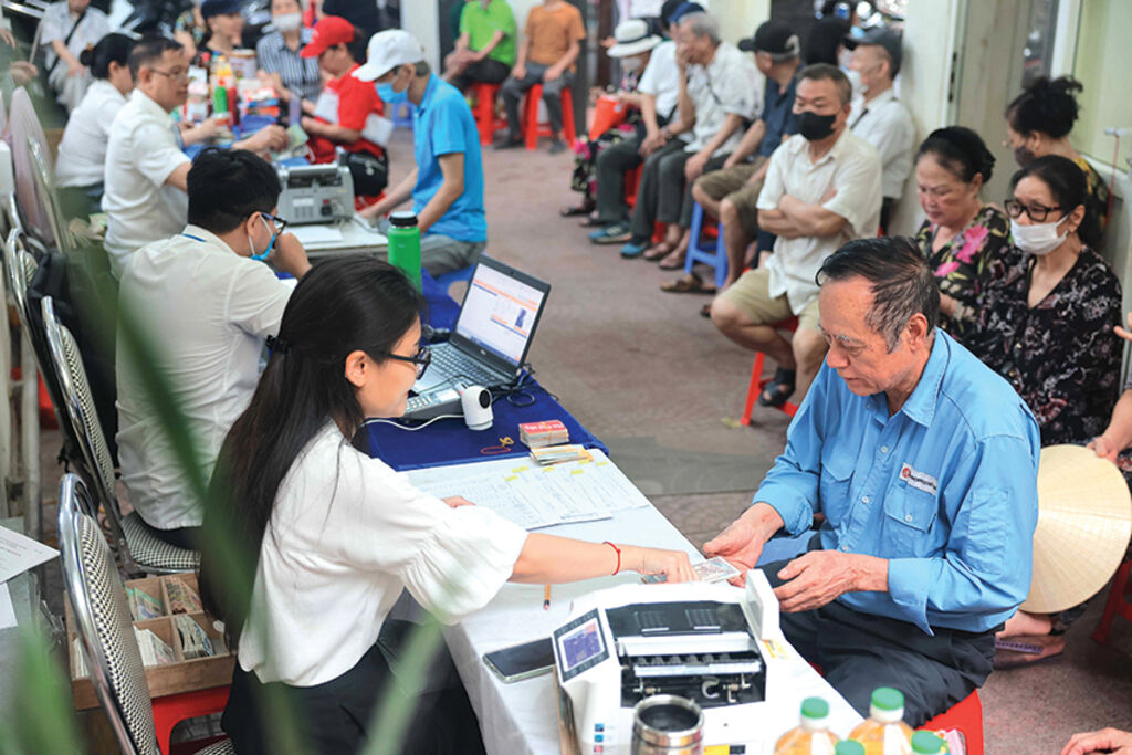 | Senior citizens in Bach Dang ward, Hai Ba Trung district, Hanoi, receive pensions and social insurance allowances via the Vietnam Post system__Photo: VNA |