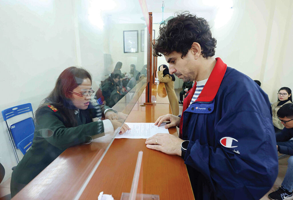 | Officers of the Hanoi Public Security Department guide a foreign national through procedures for obtaining a criminal record certificate__Photo: Pham Kien/VNA |