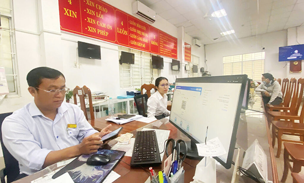 | Officials at the Public Administrative Service Center of Long Xuyen Ward (An Giang province) assist citizens in carrying out public administrative procedures in the digital environment__Photo: Cong Mao/VNA |
