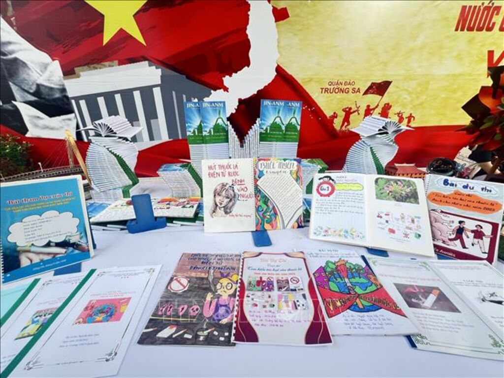 | Award-winning paintings on display at the 2025 painting contest on raising awareness about the harmful effects of tobacco __Photo: VNA |