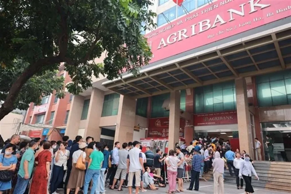 | People previously lining up to buy gold at an Agribank branch in Hanoi__Photo: VNA |