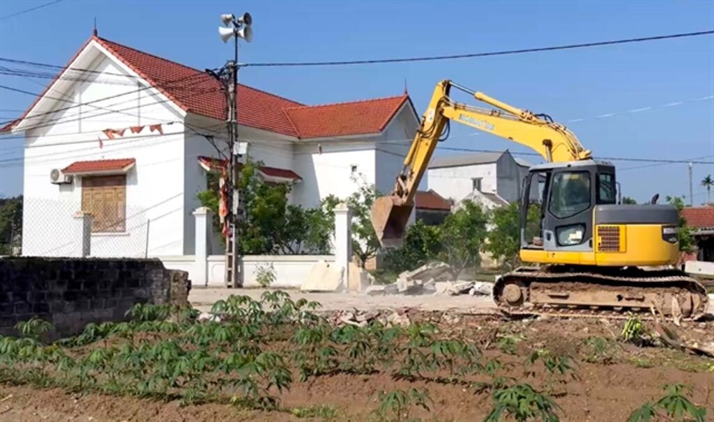| An excavator dismantles a building to clear land for a road construction project in Hung Yen province__Photo: VNA |