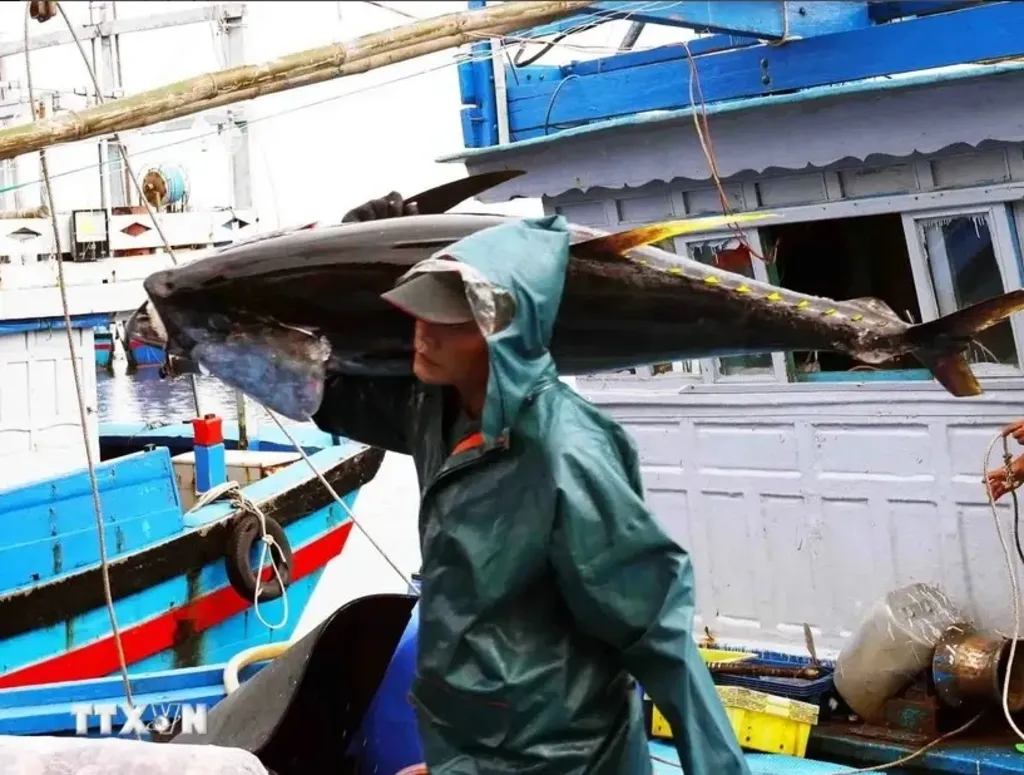 | Transporting tuna at Tam Quan fishing port, Hoai Nhon town, Binh Dinh province.__Photo: VNA |