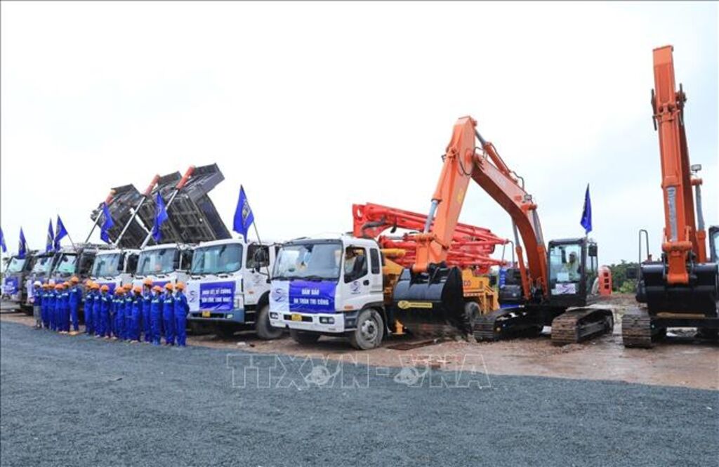 | A groundbreaking ceremony for the construction of Ring Road No. 4 in the Hanoi metropolitan area and the first phase of Cao Lanh-An Huu Expressway in the Mekong Delta province of Dong Thap in Hanoi__Photo: VNA |