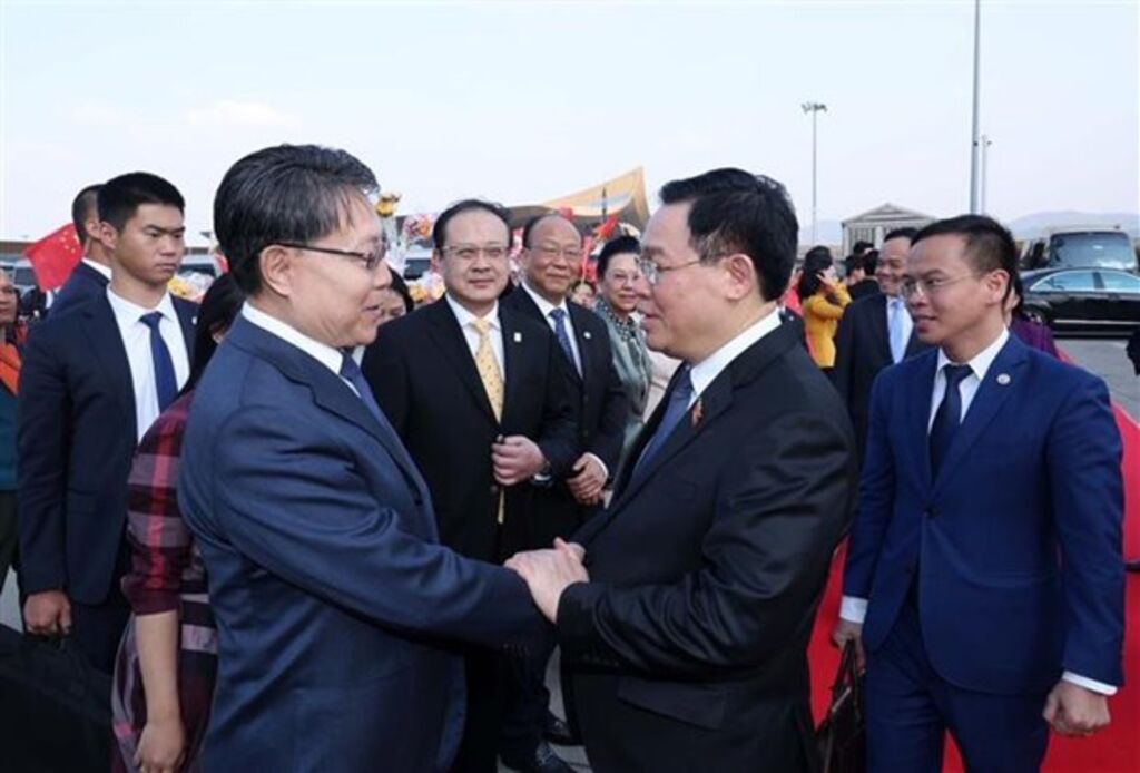 National Assembly Chairman Vuong Dinh Hue and his entourage arrived in Hanoi on April 12 afternoon, concluding their official visit to China at the invitation of Chairman of the Standing Committee of the National People's Congress (NPC) of China Zhao Leji.