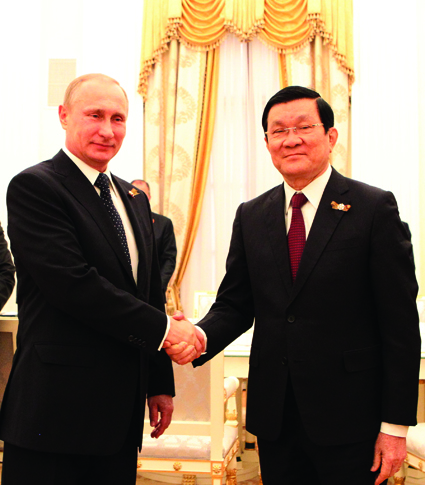 | Russian President Vladimir Putin receives his Vietnamese counterpart Truong Tan Sang in the Kremlin palace, Moscow, on May 9 __Photo: Nguyen Khang/VNA |