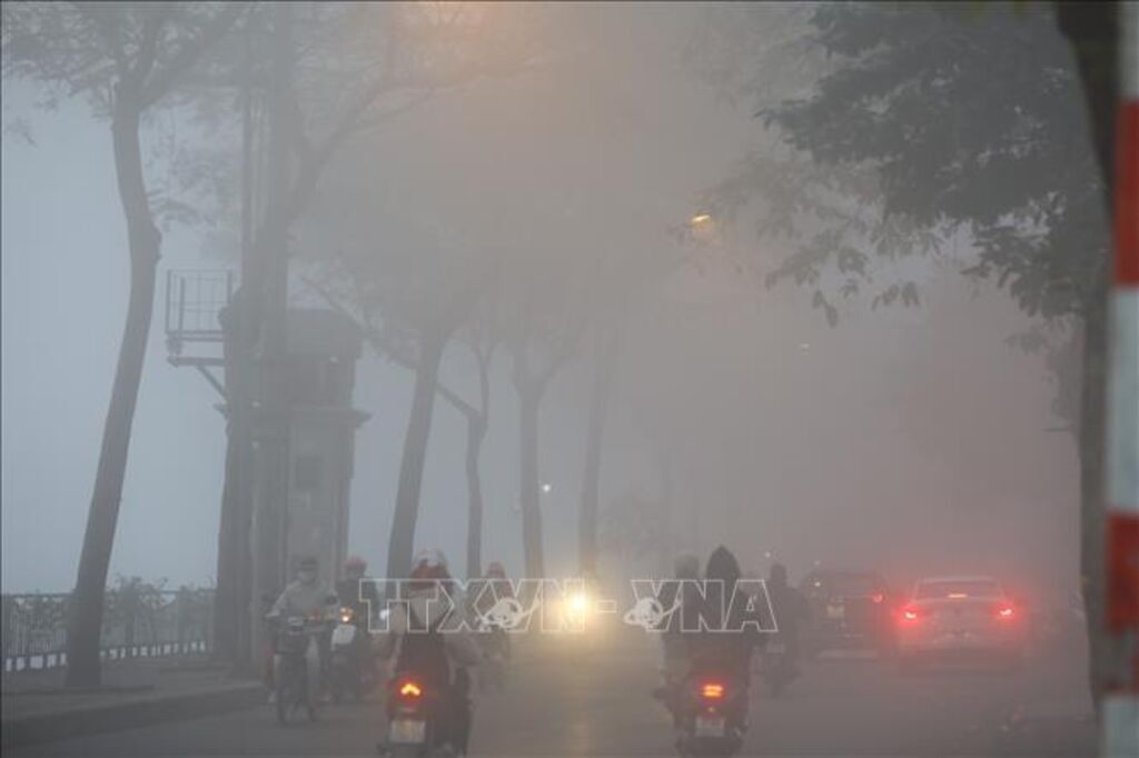 | Hanoi's streets in very smoggy morning__(Photo: Huy Hung/VNA) |