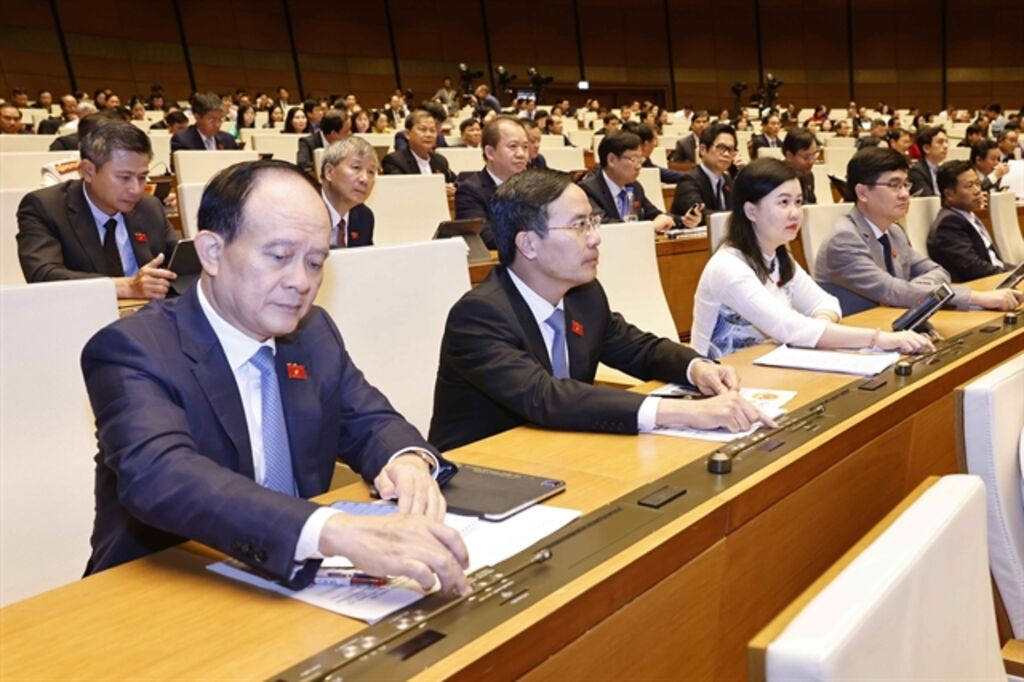 | NA deputies vote on the Government's proposal to bring forward the effective date of three major laws__Photo: VNA |
