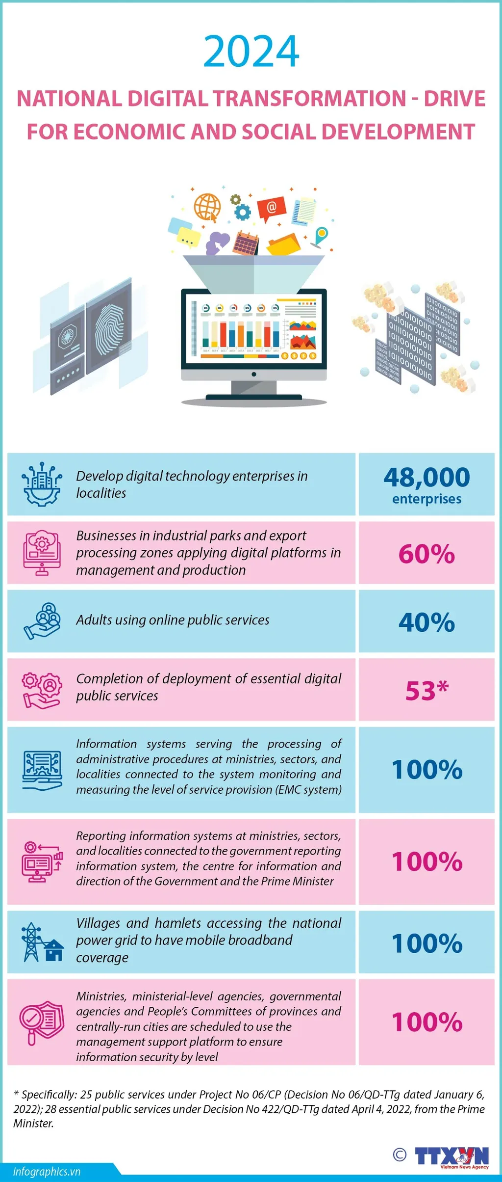 The goal of the National Digital Transformation Action Plan for 2024 is to speed up national digital transformation in an effective and practical manner, creating breakthroughs in the country’s socio-economic development, and contributing to completing all socio-economic targets for 2024 and the 2021-2025 period.