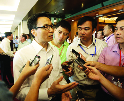 Deputy PM Vu Duc Dam talks to the pess on the sidelines of the NA’s 9th session__Photo: An Dang/VNA |