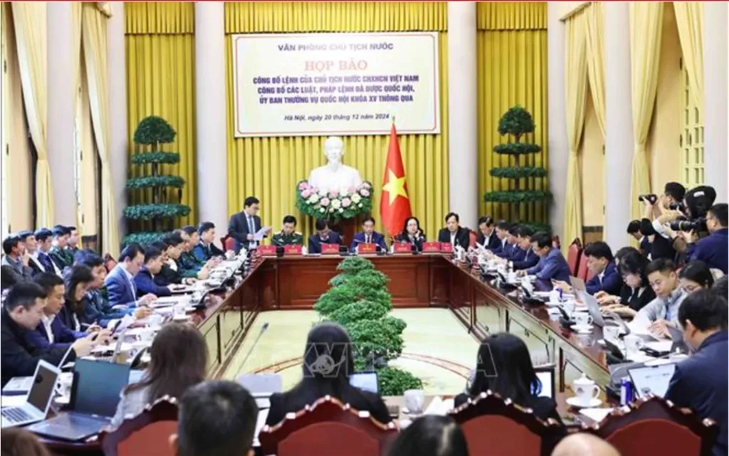 The Presidential Office on December 20 afternoon announced the President’s order to publicize nine new laws and one ordinance that were passed by the 15th National Assembly at its eighth session.