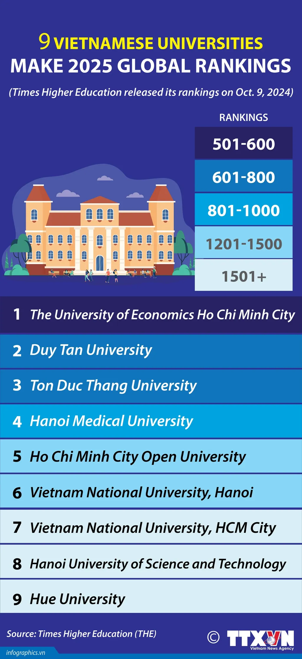 The Times Higher Education (THE) organization has unveiled its world university rankings for 2025. Hanoi Medical University has made its debut in the rankings, joining eight other Vietnamese universities recognized by THE this year.