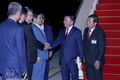 | Permanent member of the Communist Party of Vietnam (CPV) Central Committee’s Secretariat Tran Cam Tu and President of the Cambodian National Assembly Khuon Sudary at the official welcome ceremony in Cambodia__Photo: VNA |