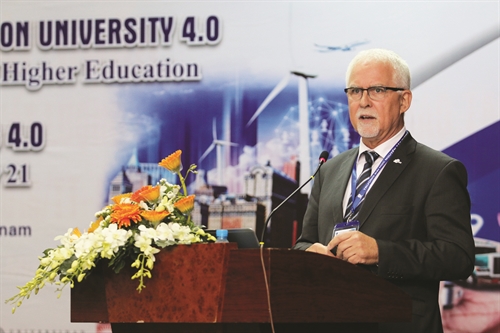 | Professor Gottfried Vossen from German Munster University speaks at a conference themed “University 4.0 - A framework for 21st Century Higher Education” in Ho Chi Minh City on July 20, 2017 __Photo: https://baochinhphu.vn |