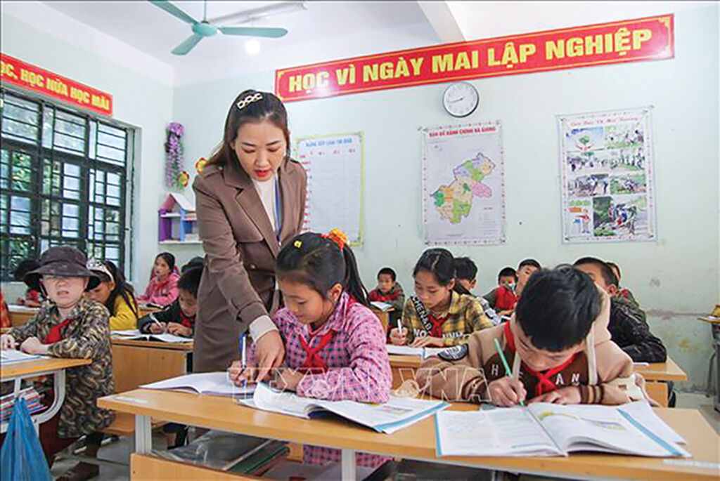 | A lesson of teacher Pham Thi Huong at Thang Tin Primary & Secondary Boarding School for Ethnic Minorities, Ha Giang province__Photo: VNA |