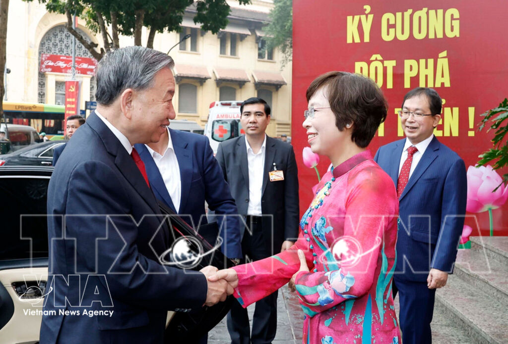 1. VNA General Director Vu Viet Trang welcomes Party General Secretary To Lam__Photo: VNA