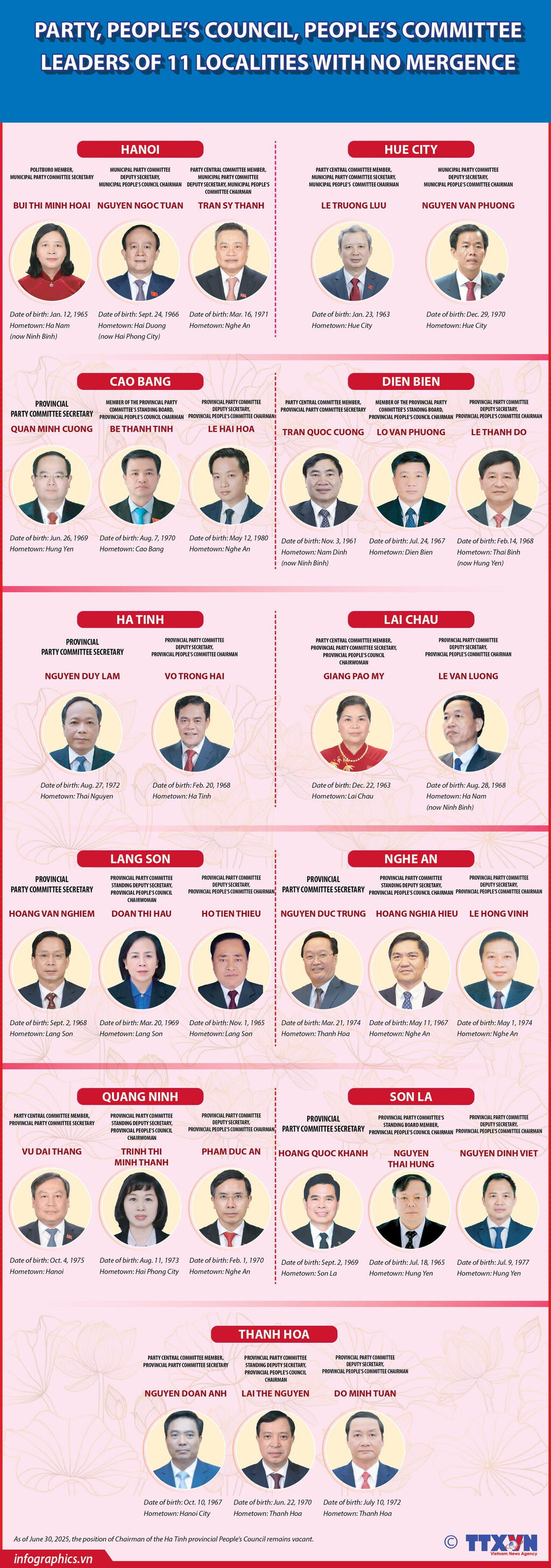 On June 30, localities across the country held ceremonies to announce resolutions and decisions issued by the Party Central Committee and local authorities on the merger of provincial- and commune-level administrative units, the establishment of new Party organizations, and the appointment of personnel to Party Committees, People’s Councils, People’s Committees, and Fatherland Front Committees at all levels.