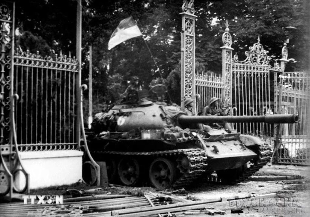 | A tank of the Tank - Armored Force No. 203, Division 304, Army Corps No. 2 enters the Independence Palace on April 30, 1975.__Photo: VNA |