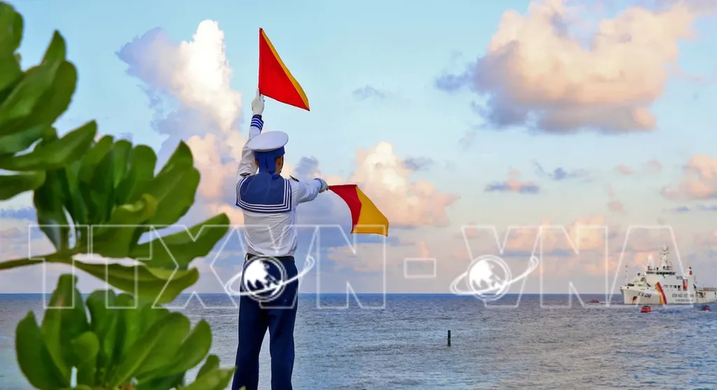 | Soldiers in Truong Sa patrol the sea day and night to safeguard the Fatherland’s peace.__Photo: VNA |