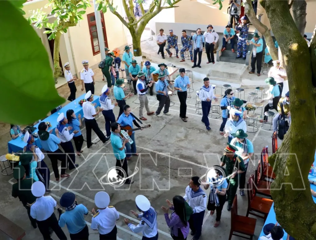 | Officers and soldiers on An Bang Island join in songs with visiting delegates.__Photo: VNA |