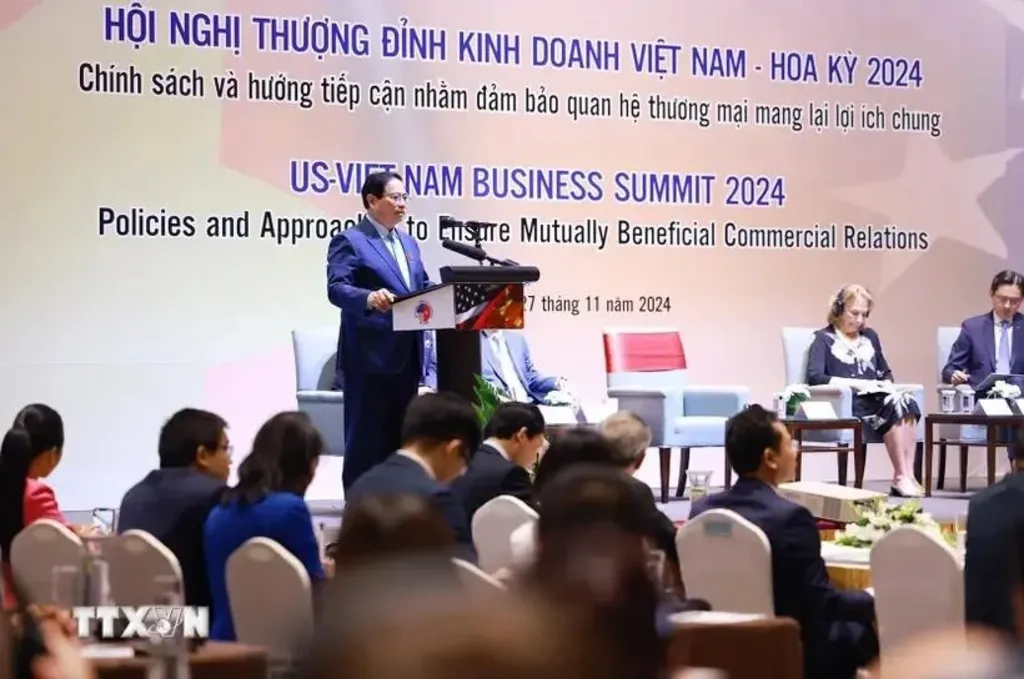 Prime Minister Pham Minh Chinh attended the 2024 US-Vietnam Business Summit, jointly held by the Vietnam Chamber of Commerce and Industry (VCCI) and the American Chamber of Commerce (AmCham) in Hanoi on November 27.