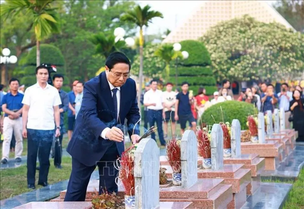| PM Pham Minh Chinh and his entourage pay tribute to fallen soldiers__Photo: VNA |