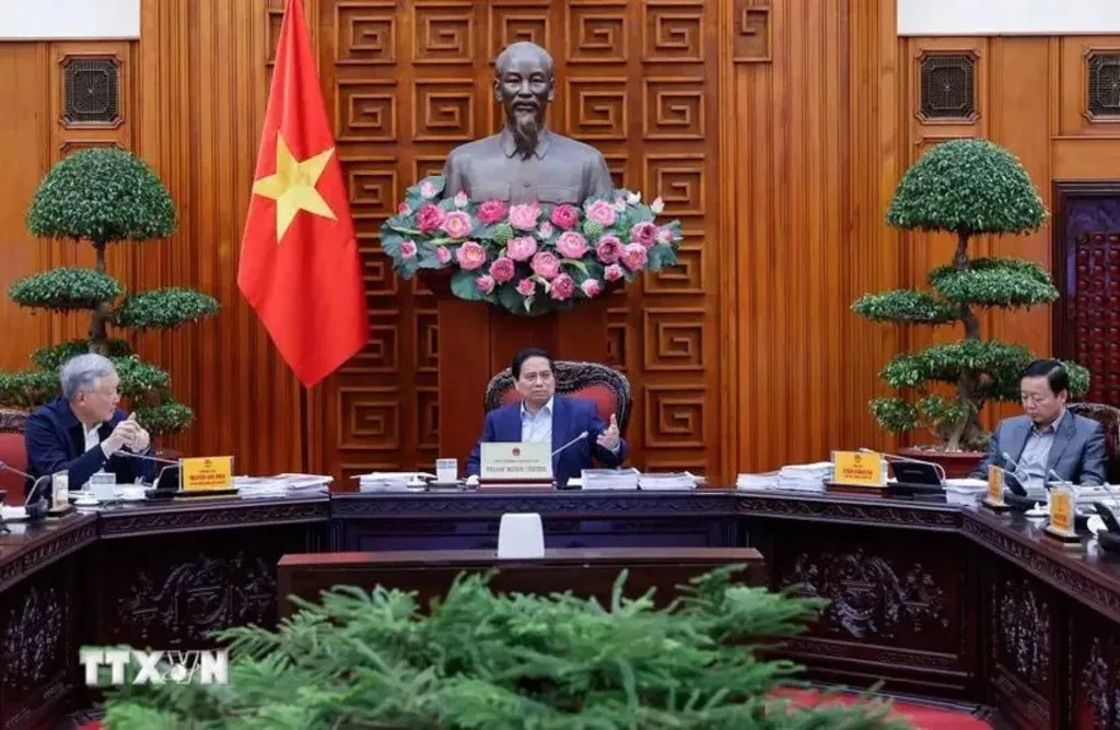 | Prime Minister Pham Minh Chinh works with permanent cabinet members on December 5__Photo: VNA |