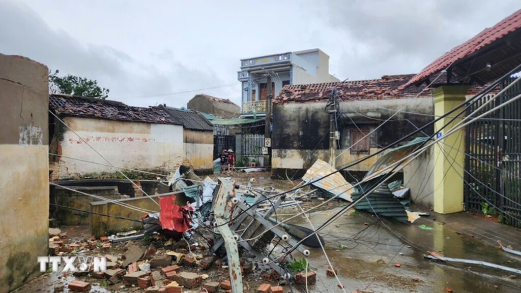| Houses in Hoang Giang commune of Thanh Hoa province are damaged by Typhoon Bualoi__Photo: VNA |