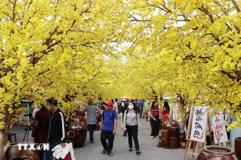 | Thousands of apricot branches and trees have been planted along Pham Ngoc Thach Street in Ho Chi Minh City ahead of the Lunar New Year (Tet) festival__Photo: VNA |
