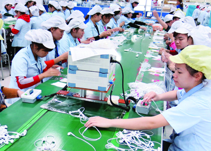 Manufacturing smart phone earpieces in Samsung’s Glonics Vietnam Company Limited in Thai Nguyen city __Photo: Hoang Nguyen/VNA |