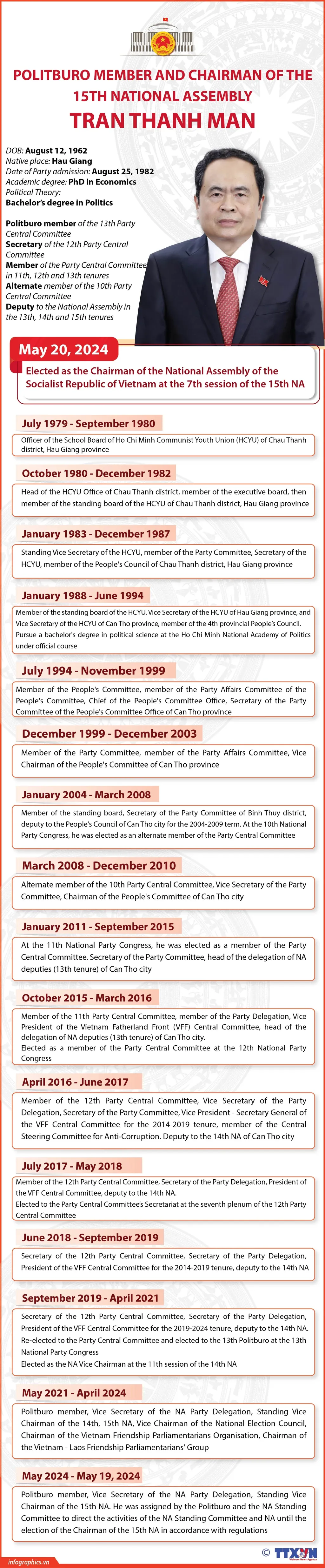 Deputies to the 15th National Assembly (NA) on May 20 elected Tran Thanh Man, Politburo member and Standing Vice Chairman of the NA, as the Chairman of the 15th NA as part of their ongoing seventh session.