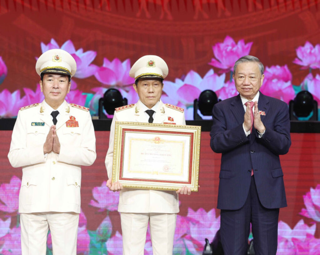 | Party General Secretary To Lam awards the Gold Star Order to the Vietnam People’s Public Security Force__Photo: VNA |