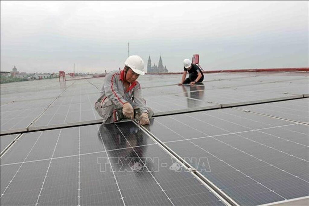| Reinforcing solar panels at Maxport 9 factory in Hai Hau district, Nam Dinh province__Photo: VNA |