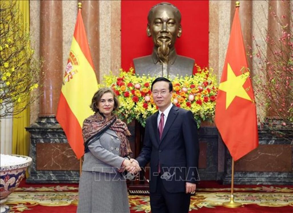 | President Vo Van Thuong hosts Spanish Ambassador Carmen Cano De Lasala__Photo: VNA |