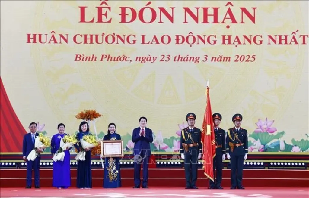 President Luong Cuong on March 23 awarded the first-class Labour Order to the Party organisation, authorities and people of the southern province of Binh Phuoc, in recognition of their outstanding achievements in socio-economic development in ethnic minority areas, contributing to the socialism building and Fatherland defence cause.