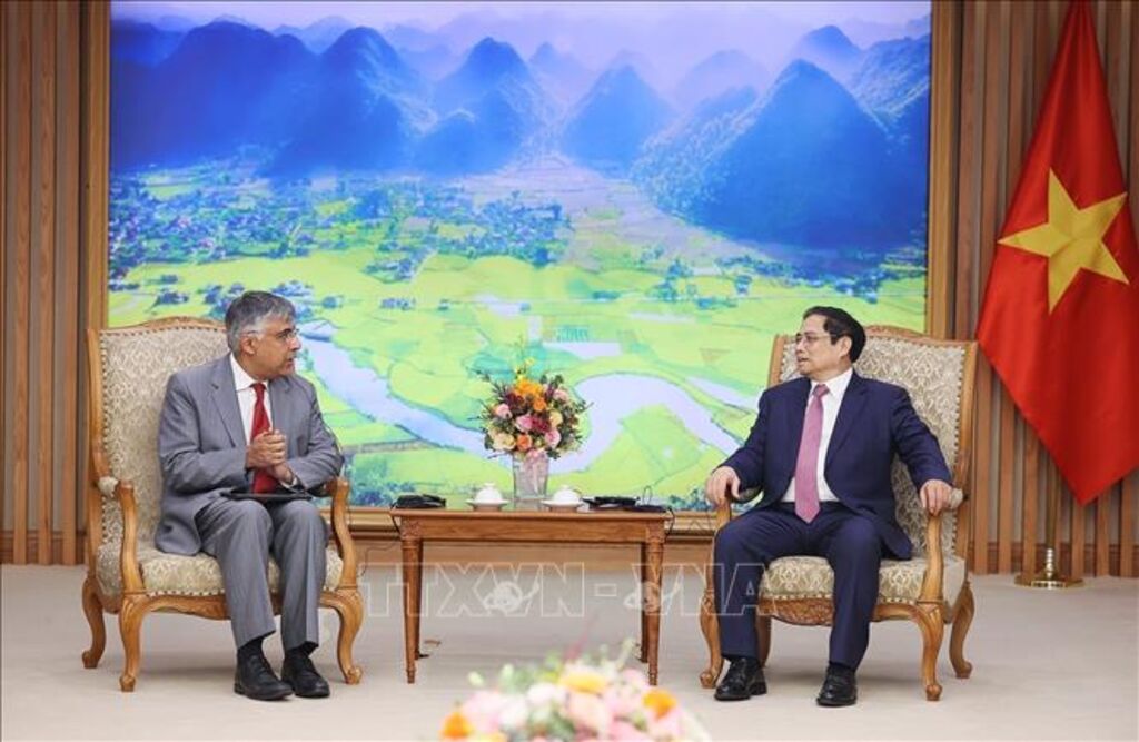| Prime Minister Pham Minh Chinh (R) and Sanjaya Panth, Deputy Director of the IMF’s Asia and Pacific Department__Photo: VNA |