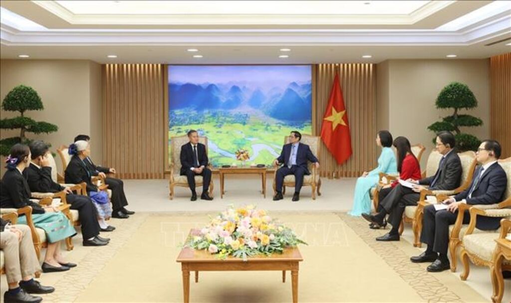 | Prime Minister Pham Minh Chinh hosted a reception for General Director of Lao News Agency Khampheuy Philapha in Hanoi on July 24.__(Photo: Duong Giang/VNA) |