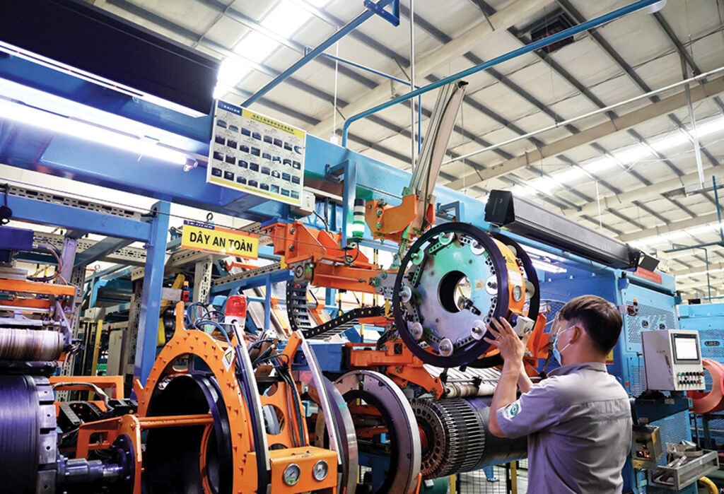 | Producing automobile tires at a plant of the China-invested Sailun Vietnam Co. Ltd.__Photo: VNA |