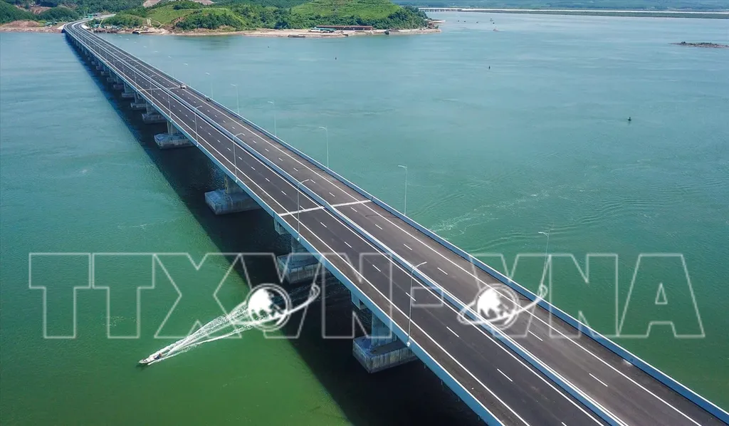 | Van Tien bridge (Van Don-Mong Cai Expressway) connects Van Don district with Tien Yen district in Quang Ninh province.__Photo: VNP/VNA |