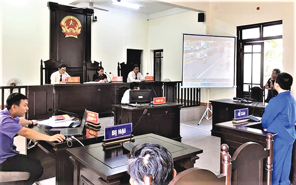 | Presenting e-evidence during a court hearing at the Hanoi People’s Court on July 20, 2023__Photo: VNA |