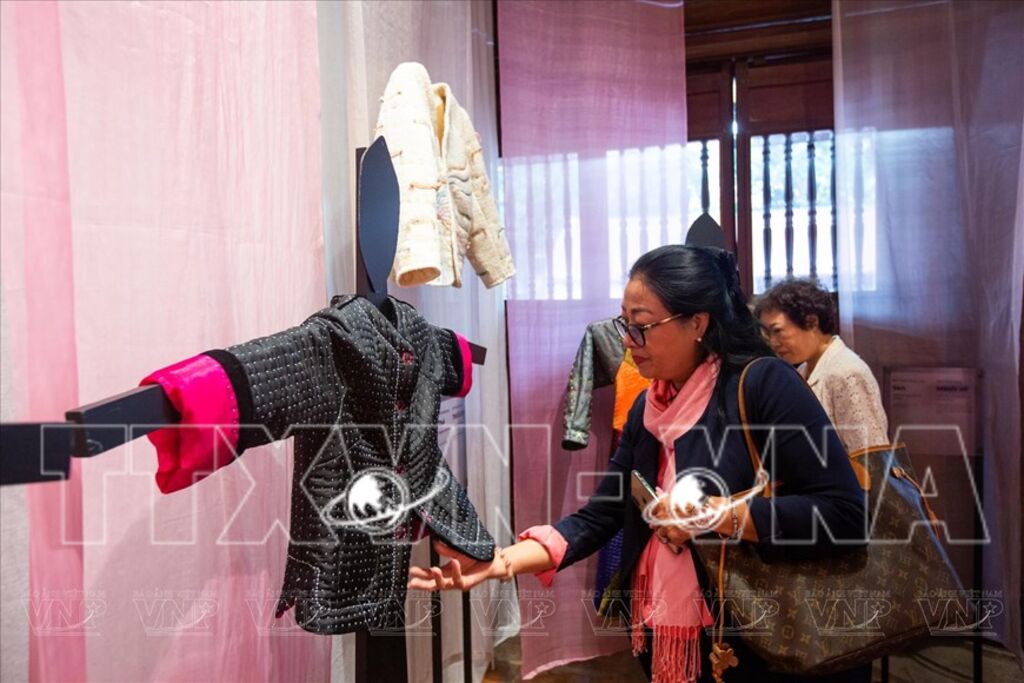 | Tourists admire the “Grain of Rice” jacket made from black silk__Photo: VNA |