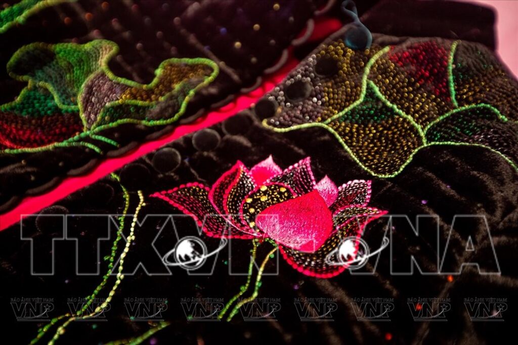 | A jacket is crafted using embroidery techniques and depicts lotus flowers__Photo: VNA |