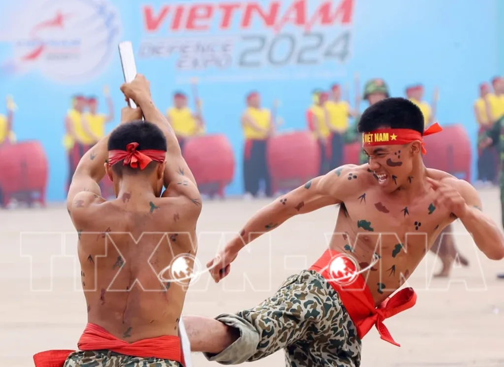 | Art performance welcomes the opening ceremony of the Vietnam International Defense Expo 2024, scheduled to take place from December 19-22 in Hanoi.__Photo: Van Diep/VNA |