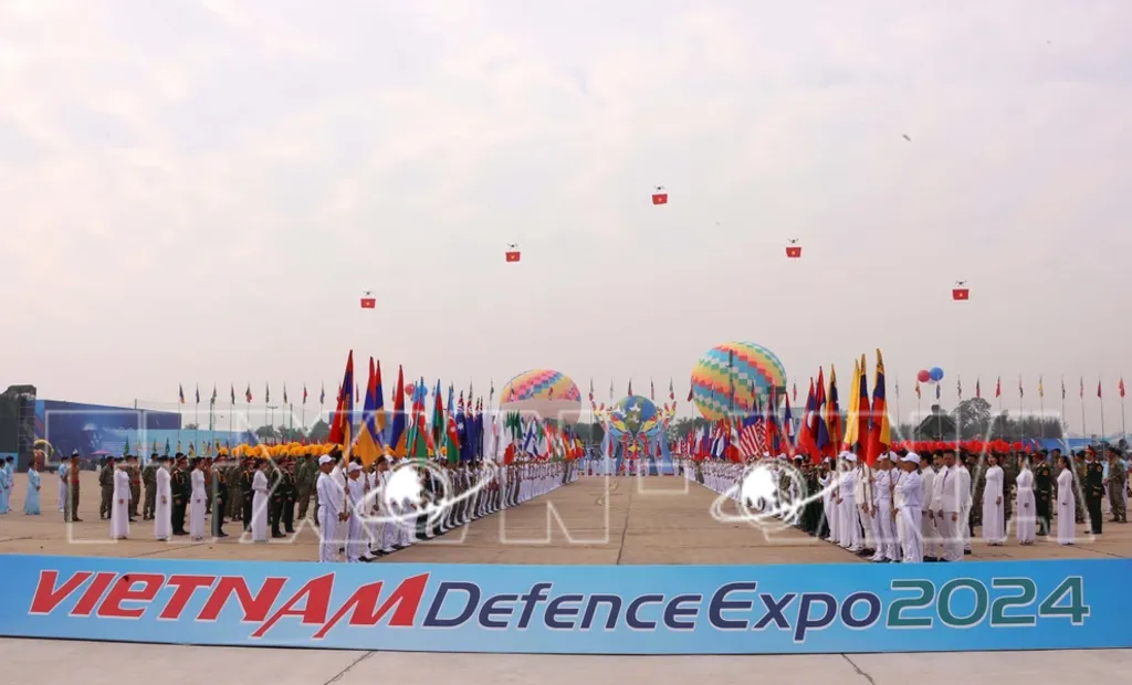 | The rehearsal for the opening ceremony of the Vietnam International Defense Expo 2024 in progress.__Photo: Van Diep/VNA |