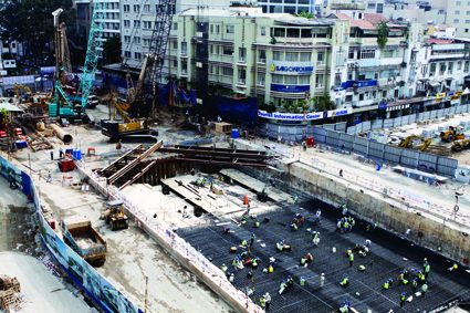 | The construction site of an underground station of metro line No. 1 from Ben Thanh to Suoi Tien (Ho Chi Minh City) __Photo: Hoang Hai/VNA |