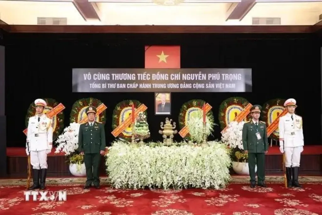 Former Party General Secretary Nong Duc Manh; former Presidents Nguyen Minh Triet, Truong Tan Sang, Nguyen Xuan Phuc, and Vo Van Thuong; former PM Nguyen Tan Dung; former NA Chairmen Nguyen Sinh Hung, Nguyen Thi Kim Ngan, and Vuong Dinh Hue; along with many other incumbent and former leaders of the Party and State also came to pay the last respects to General Secretary Trong and extend condolences to his family.