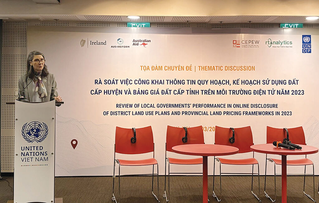 The online disclosure by provincial and district governments of land use master plans/plans and land price frameworks significantly improved in 2023 compared to 2021 and 2022. These were the results of the 2023 review conducted by the United Nations Development Program (UNDP) in Vietnam, Real-Time Analytics (RTA) and Center for Education Promotion and Empowerment of Women (CEPEW) that were presented on March 12 in Hanoi.