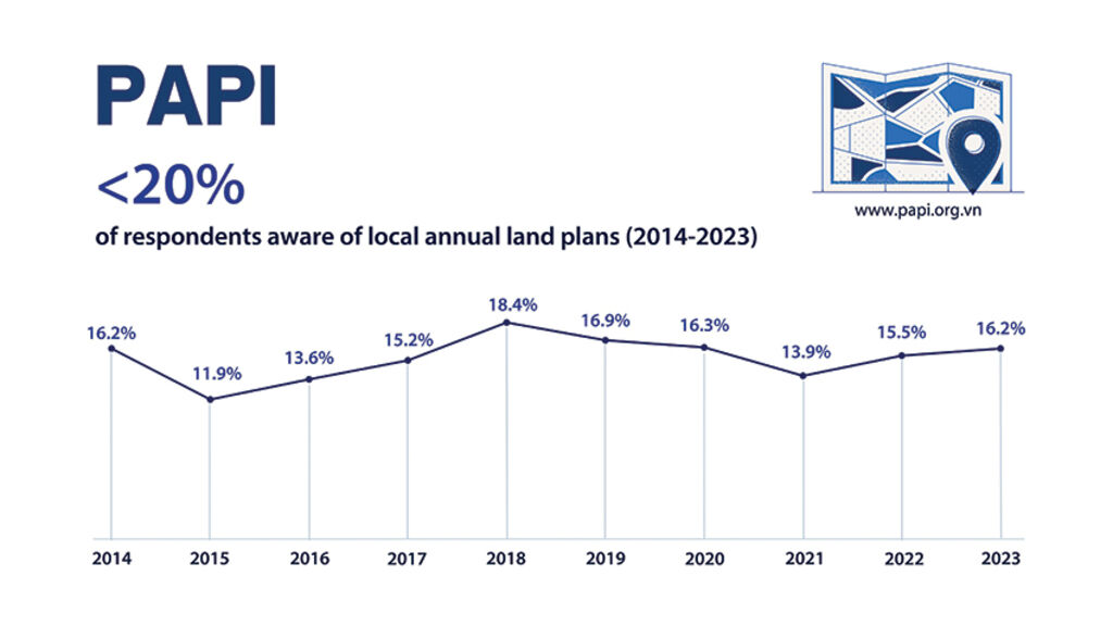 This article presents key findings from the 2023 research on the disclosure of land information (10-year DLLUMPs, annual DLLUPs and PLLPFs) by local authorities in Vietnam in comparison with the 2021 and 2022 findings.[1] The annual review has been jointly conducted by UNDP in Vietnam, RTA and CEPEW since 2021. It closes with recommendations for better performance and strengthened policy measures of land transparency at the local level.